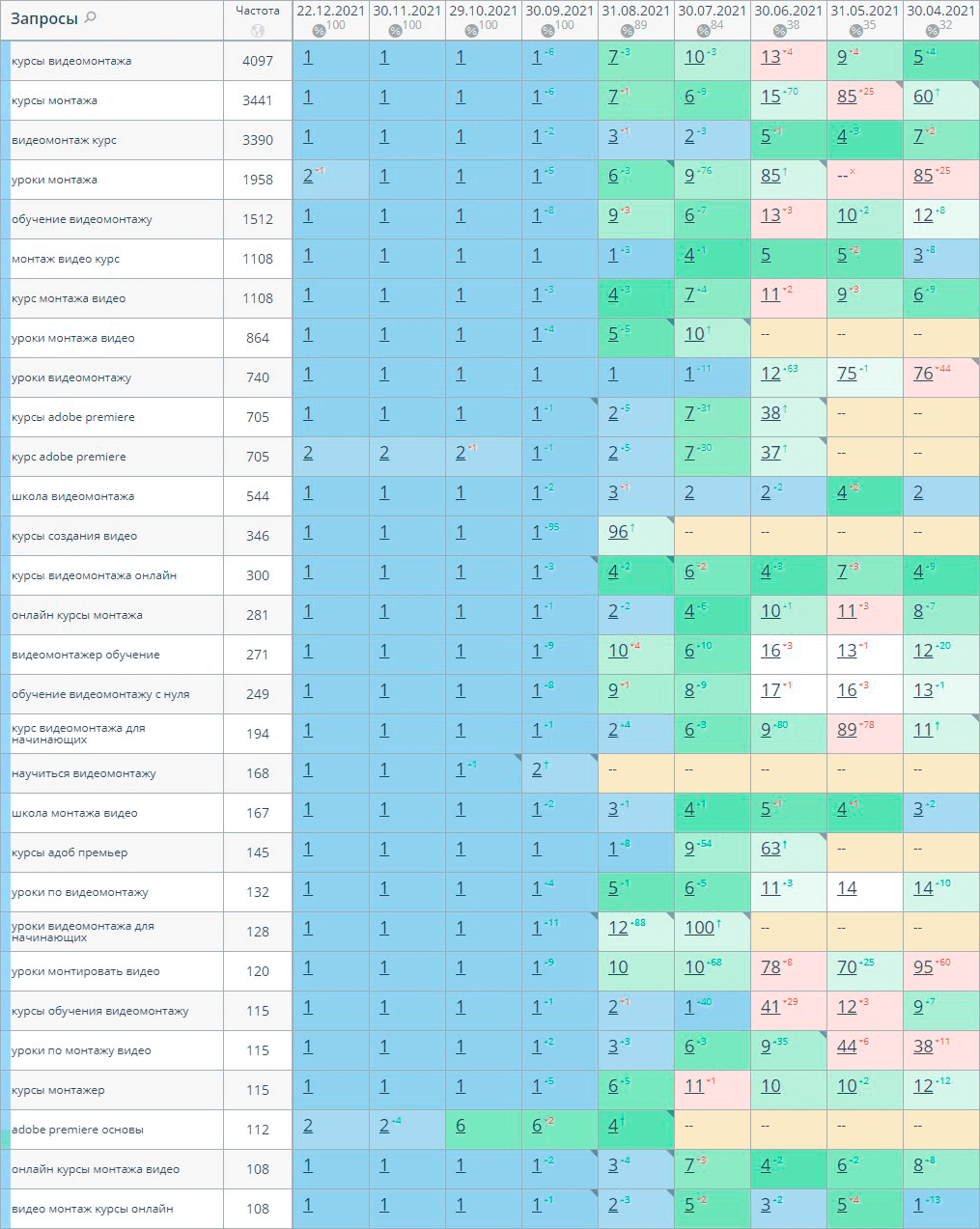 Динамика позиций сайта