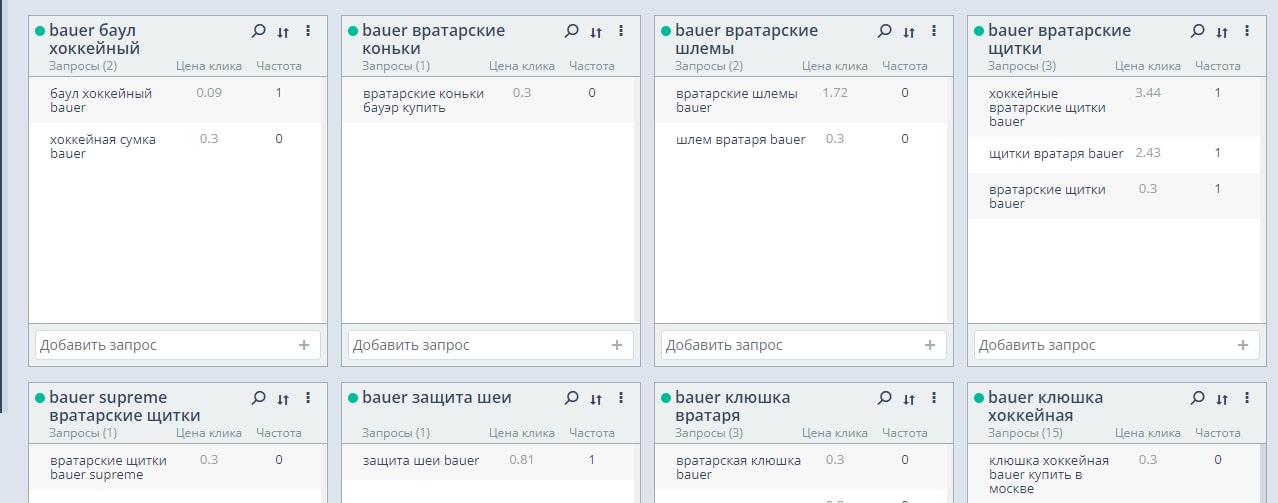 Были собраны и кластеризованы запросы: