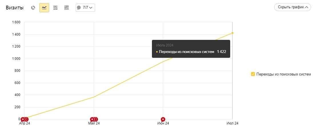 Трафик из поисковых систем достигает 1442 человека: