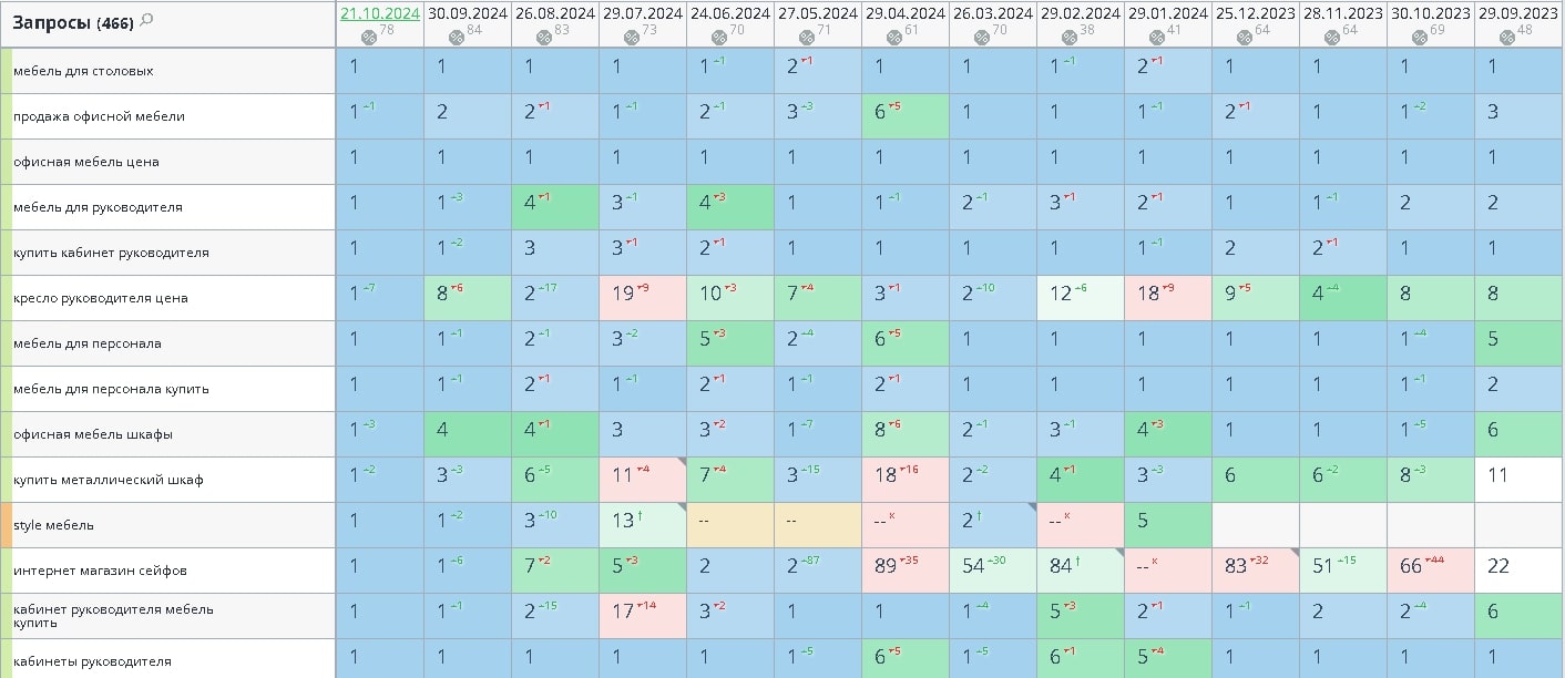 После месяцев работы и продвижения сайта в топ-10 входят 78% запросов, в топ-3 41%. Позиции на 2024 год: