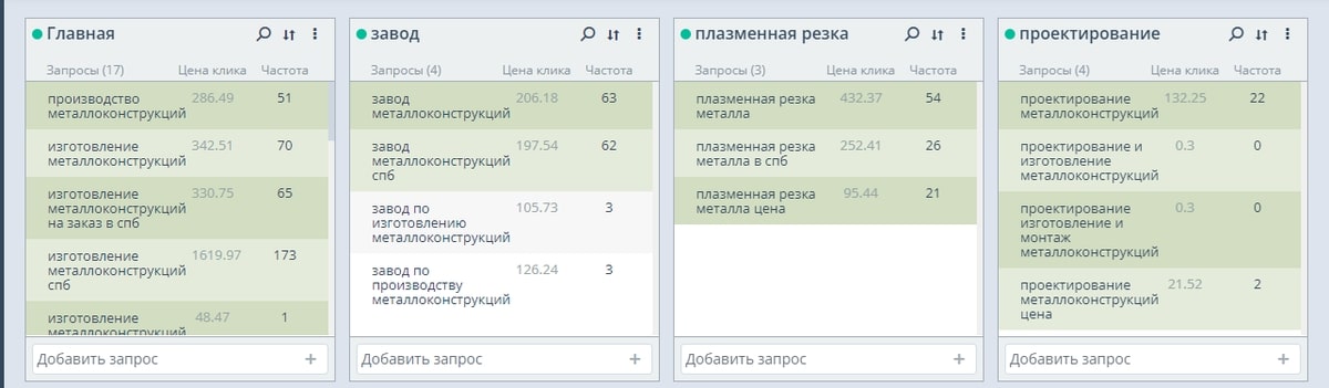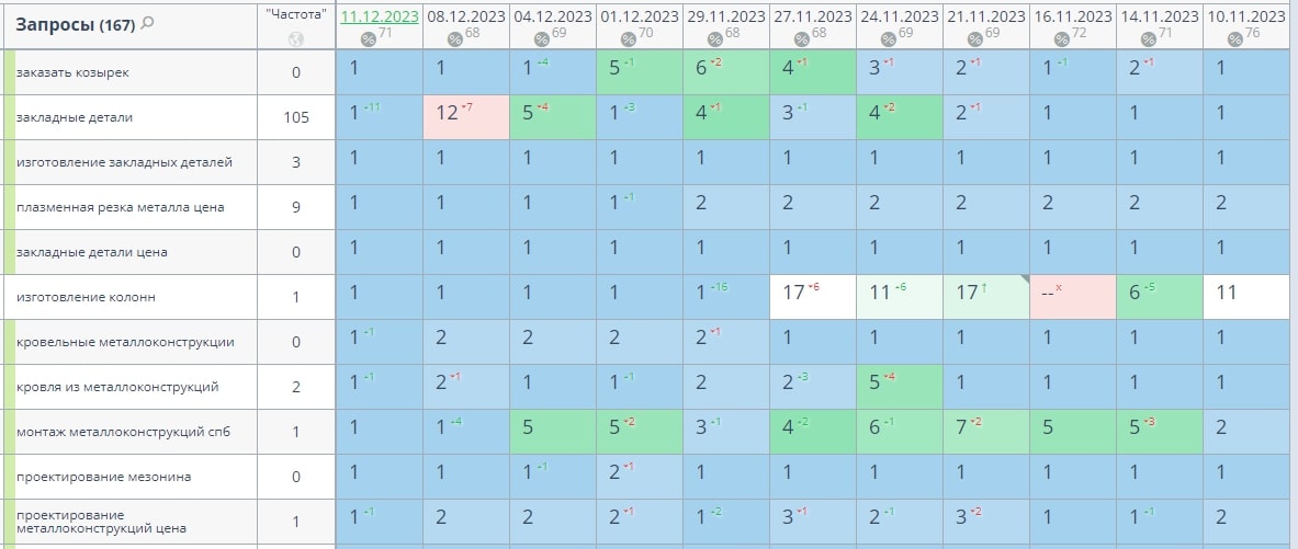 - Сбор высокочастотных и среднечастотных запросов по теме изготовление, монтаж и проектирование металлоконструкций